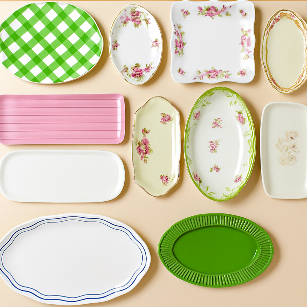 Whether you’re going for classic elegance with gold and cream, playful charm with strawberries or gingham, or a fresh pop of colour with green, our plates and linens are designed to mix, match, and complement one another.